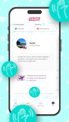 Es la única app pensada para unir a quienes buscan viajar o ya están viviendo en el exterior, facilitando la comunicación entre quienes comparten experiencias y metas similares.
