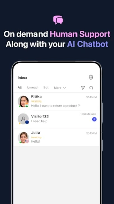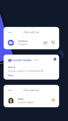 Combine AI efficiency with a personal touch. The chatbot escalates more complex issues to human agents, who can respond directly through the mobile app, ensuring your customers always receive the help they need.