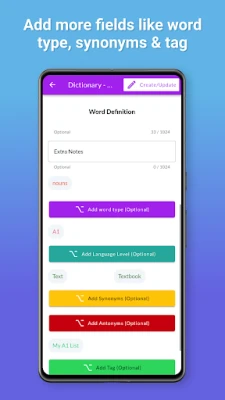 ► Adding Tags: When you want to group words by theme or category, add tags. For example, if you're learning words related to animals, you can tag them as "Animals" for easy reference.