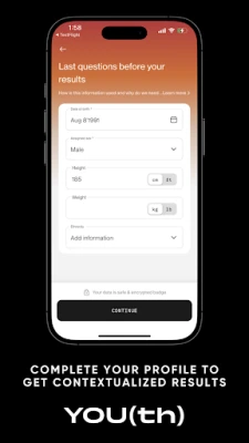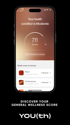 YOU(th) is a mobile application that leverages AI to check your wellness in less than 2 minutes using just your smartphone. Our mission is to help optimize your wellness, extending your healthspan while enhancing your overall lifespan and longevity. From data inputs like face videos, voice recordings, or step patterns, we estimate digital wellness biomarkers, skin wellness, and others. We then provide personalized lifestyle recommendations. YOU(th) is the ecosystem hosting a wide range of partners, ranging from longevity clinics to supplement companies. Select your partner and enter your access code to unlock the customized interface and functionalities.