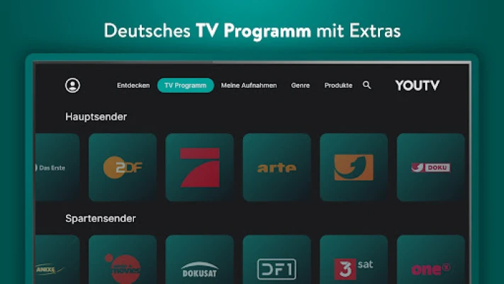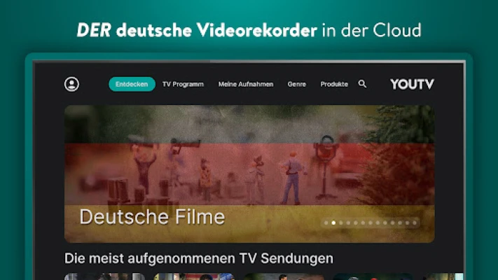 Finally watching German TV how I want - worldwide. With YouTV® you record every German TV channel, every TV show, worldwide with one click. The amazing YouTV is a cloud based Online TV recorder that enables you to record your favorite TV shows with one single click. No need for further hardware! Your App and the private cloud VCR are enough! Lean back and select one of your recordings available from a simple to use App.