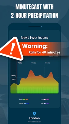 The bar graph shows the trend of rain probability in the next two hours. Know the rain time clearly and take precautions in advance.