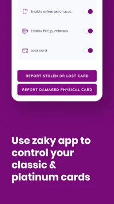Take charge of your Zaky card with features like balance inquiry, e-pin, lock/unlock, and transaction history.