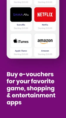 Purchase e-vouchers for your favorite gaming, shopping, and entertainment apps, such as iTunes, PlayStation, Xbox, Amazon, Netflix, and more.