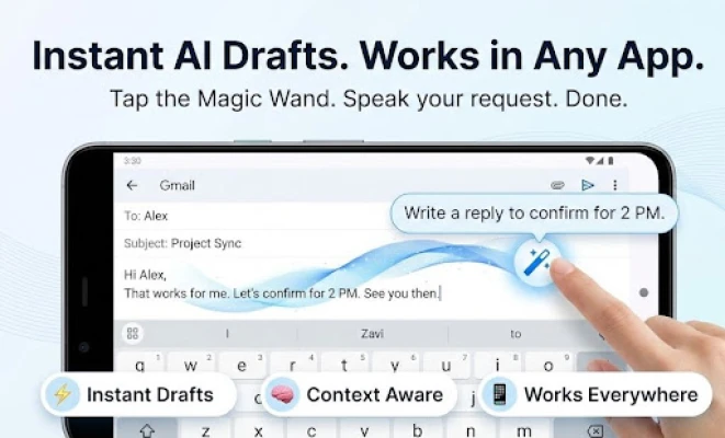 Does Zavi work with my existing apps? Yes! Zavi is a system-wide AI keyboard that works seamlessly in every app.