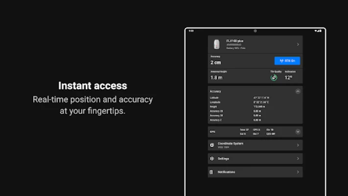 • After opening a location aware app, the position will automatically stream from the antenna when a GNSS fix is available.