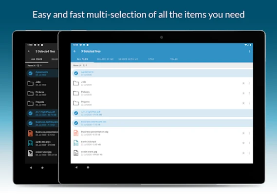 You can also download and manage files and even keep all your favorite documents automatically synced on your device in order to access them even when offline.