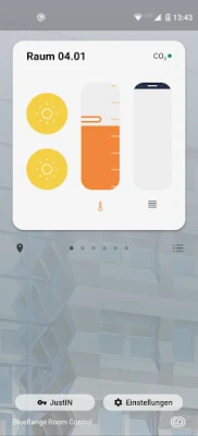 JALOUSIENSTEUERUNG inkl. Einstellung der Lamellen LICHTSTEUERUNG inkl. Farbeinstellungen und Lichtintensität TEMPERATURREGLUNG Steuerung über Heiz-/ Kühldeckensegel ZUGANGSKONTROLLE