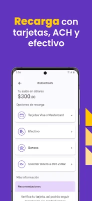 Recarga tu monedero digital con tu tarjeta de crédito o débito internacional, efectivo, transferencias bancarias ACH o solicitando a un amigo que te envíe dinero a través de Zinli