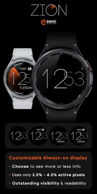 ZION is a highly minimalist digital watch face with a design focused on pure clarity and simplicity, while still providing great usability, functionality and plenty of customization!