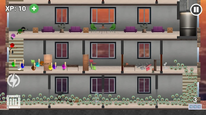Zombie Tower Escape is a strategic game where you help colored marbles in a race for survival through a tall building, all while eluding relentless zombie marbles. Navigate through progressively challenging levels, striving to earn all stars by ensuring each marble reaches the helicopter atop the tower. Alternatively, test your mettle in the 'Endless Tower' mode, aiming to endure and surpass your high score.