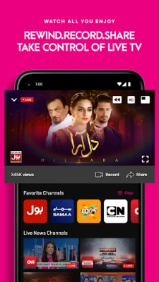 Application features • 40+ Live TV Channels • Watch & Record your favorite shows simultaneously • Uninterrupted Streaming of High-Quality Video with adaptive streaming • Rewind Play Back feature lets you watch 7 days of missed show recordings on Live TV channels • User-friendly Intuitive Interface • Picture-in-Picture mode lets you do other tasks on your phone while streaming on Zong TV • On-screen Player Controls • 24 x 7 Connectivity