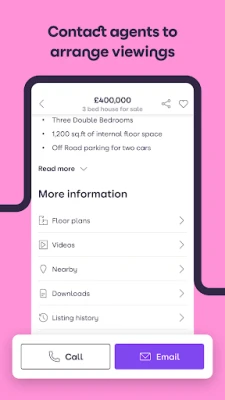 - Connect with local estate agents straight from the app and book a viewing for those must-see properties.